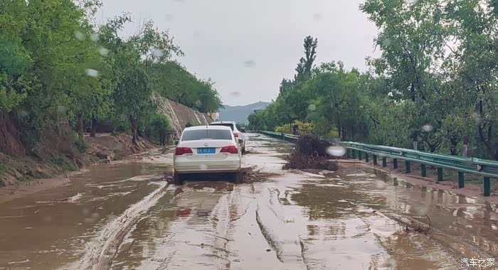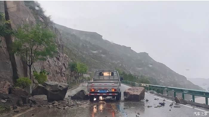 一路上走走停停时晴时雨,遇上了两场暴雨,路旁悬崖上下来的滚滚黄水冲刷着公路,路上不时有小车被被半尺深的黄泥浆困住,还有落石落在公路非常惊险,途中两次巨石拦路,大家下车清出通道继续前进,简直刺激精彩。