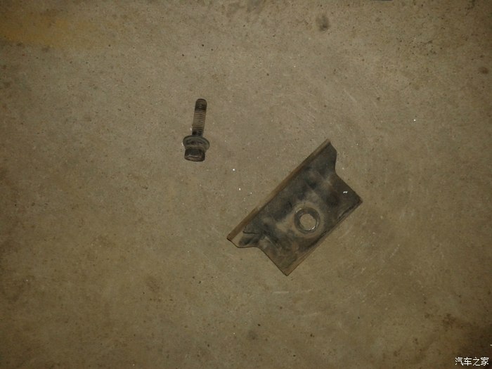 3、可以看到电瓶底部有一小铁片用螺丝固定,用长套筒拧下,好像是10号的