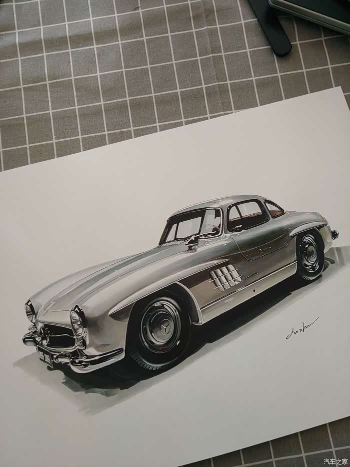 大家好,我是插画论坛版主吉吉哥,近期工作繁忙快两个月未发帖了,在这里向大家说声抱歉,说起我的绘画,白天在外忙工作,只有晚上在家可以画几个小时,偶尔白天不忙时也能画几笔,我对老爷车是情有独钟,可能是年龄的问题?越来越喜欢复古、怀旧的产物,不光是喜欢复古汽车,只要有年代,经典的都喜欢,近期在家完成了两辆老爷车,这幅奔弛300SL是其中一幅,另一幅是有年代的法拉利250GT,我再另外发帖哦 。