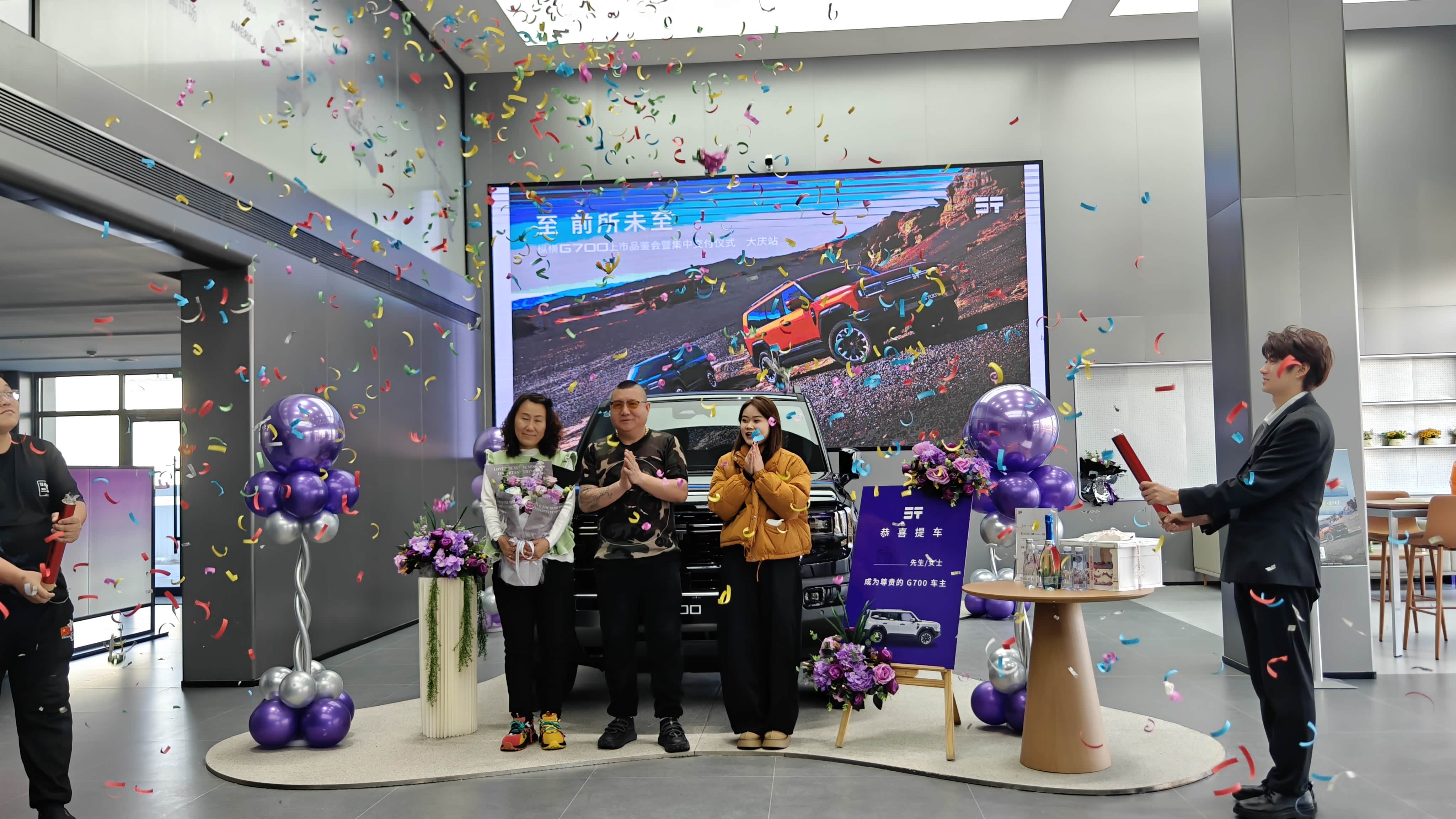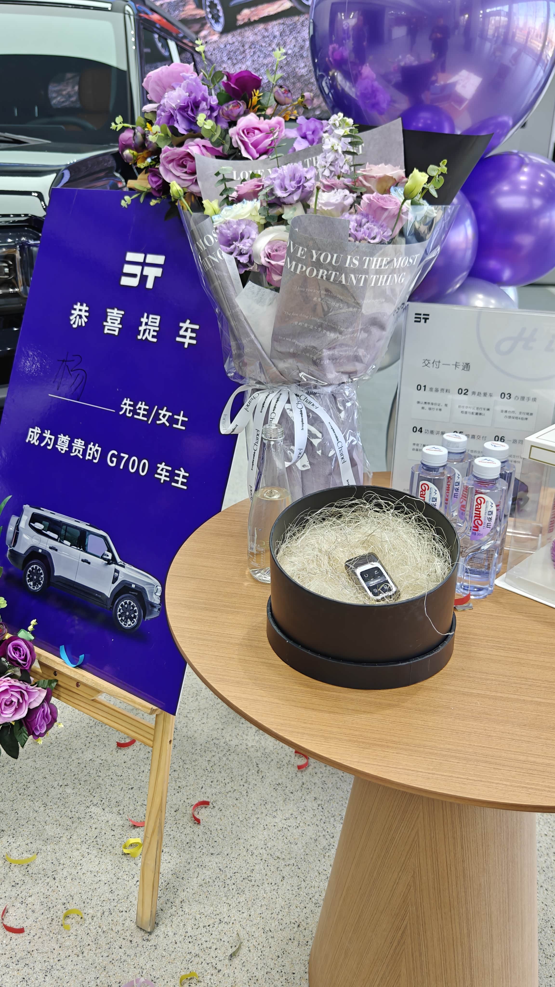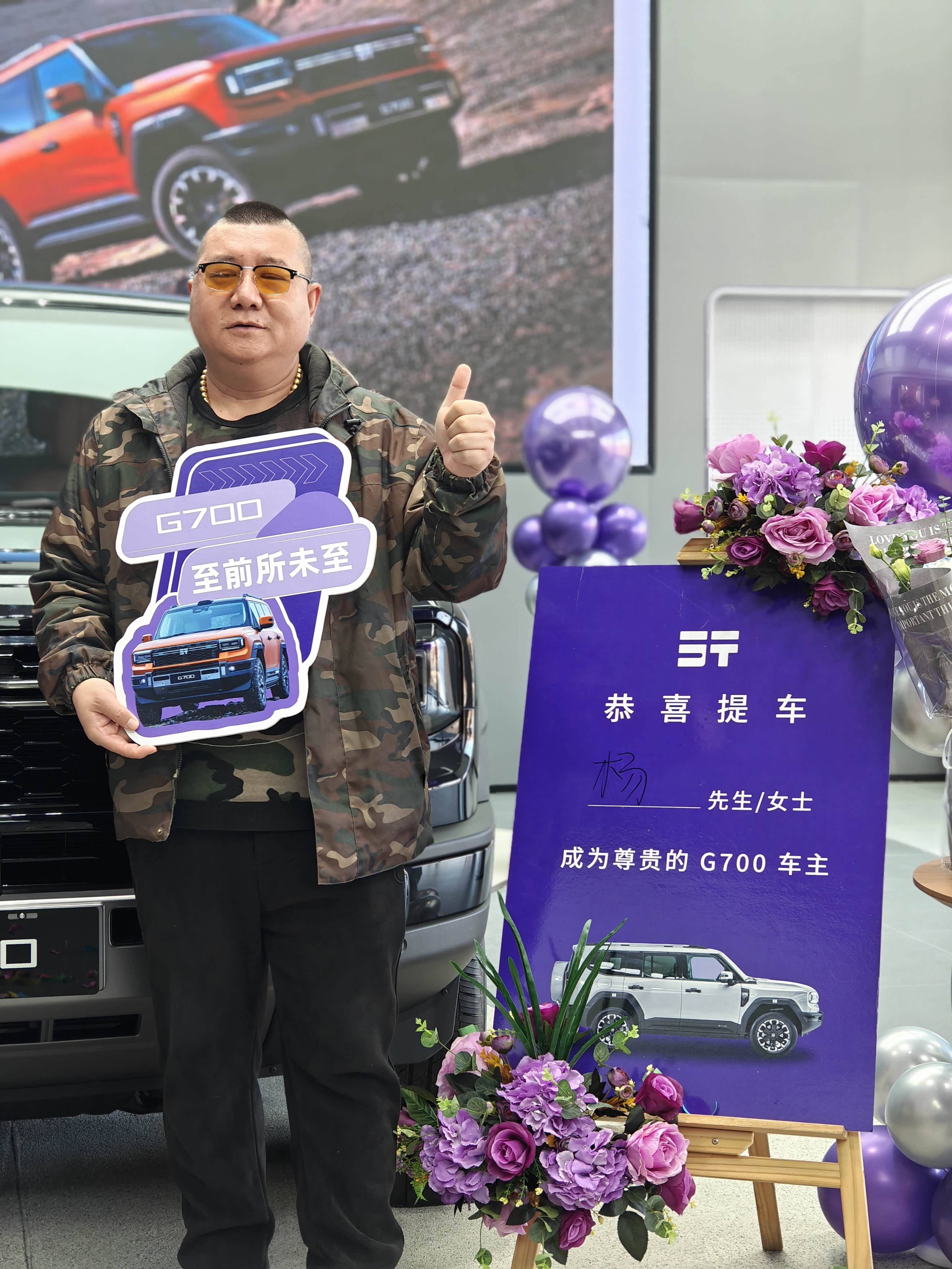 我是大庆的一名采油工人,为我是一名油田职工而自豪,因为石油是全球紧俏的资源,也是不可再生资源,所以我珍惜当下的生活,工作也有30年了,也符合换车条件,之前开的是一台老款大众车,经过多方面了解,下班刷视频的时候看到了纵横G700,它一台可以下水的车,眼前一亮我个人感觉不错,外观造型硬朗大气,内饰高端上档次,还有底盘可以升降,这方面我特别喜欢,因为我平时上班多数都是油田前线,路况非常差有泥泞不堪的,草地路段居多一些,一般都是没有路,都是开车压出来的路,所以从各方面考虑我决定买这了台车,从了解这台车到提车不到一个月,去店里试驾了一下,直接就下订享受了很多厂里政策和店里给的福利,提车那天我特别满意!因为我头一天过生日,店里知道后特意为我准备了一个蛋糕,不是说蛋糕有多好,是这份情谊其它的东西都比不了,还有鲜花红酒等,为我举办了非常热闹的交车仪式!从看到这台车到试驾再到提车,整体一些环节和过程,我感觉非常满意!
