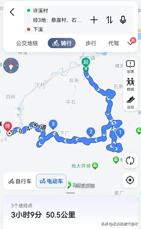 所以,前往悬崖村,第二、第三方案的“骑行”路线还是有一定驾驶难度的。如果你是一个如我一般追求山野小道惊险刺激的人,可以选择挑战“骑行”路线。但出于安全和稳妥考虑,我个人还是建议走第一方案,采用导航“驾车”模式,走东入口上山,然后设置途经石研村和里田石村的“骑行”模式,走西入口下山,这条环线难度相对较小,沿途风光也非常秀美。