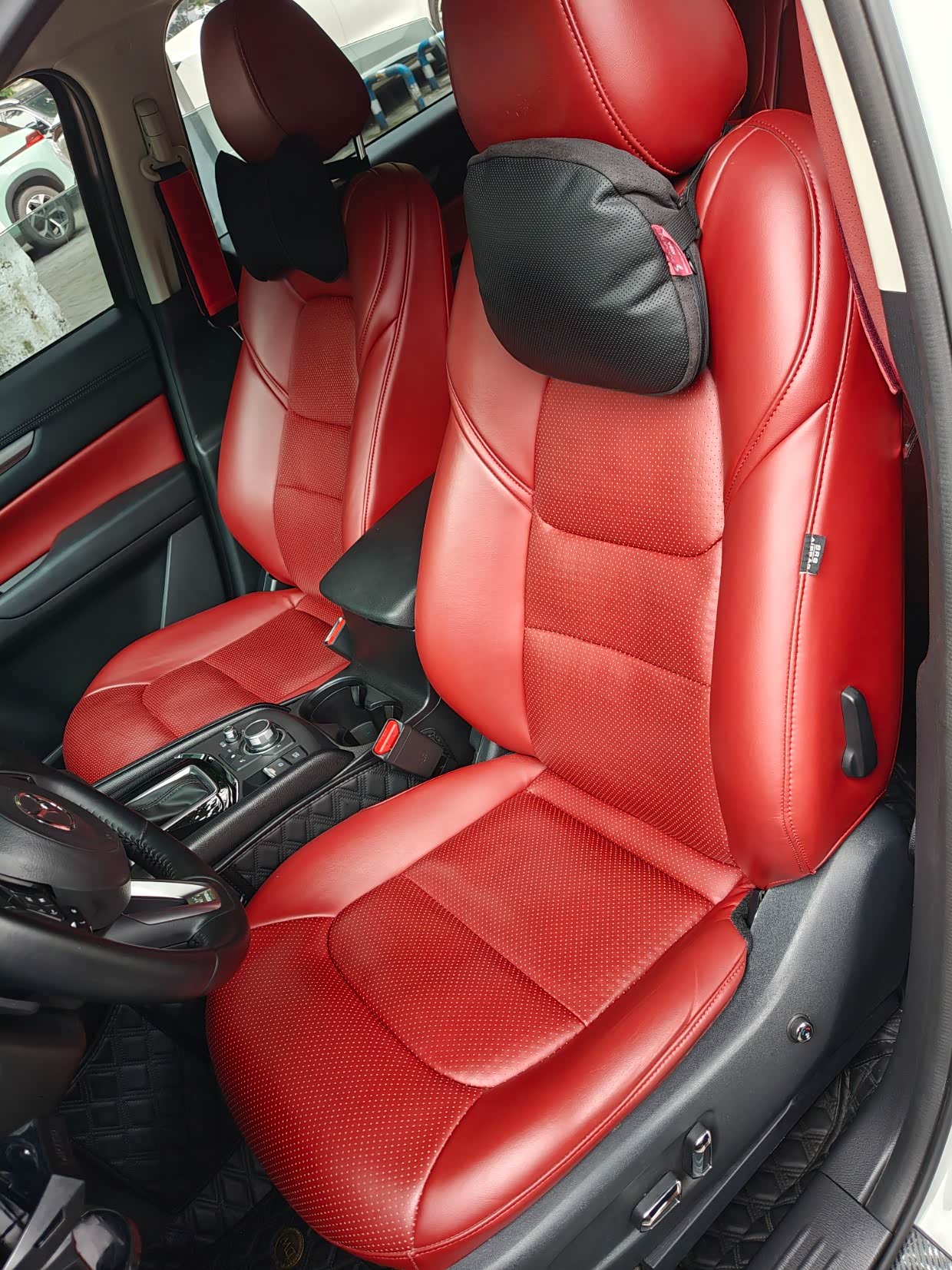 换掉了原车的布座椅,包的打孔皮座椅,颜色参考了马3的红色座椅