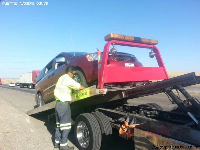 )原来对方说联系不上我们,救援车又折返,因为我们的中国号码他们打不通,晕。。。我们只有这个联系方式。就在我继续等待的时候,有一辆休旅车(貌似Subaru的力狮)在我们的前方50米处停下。我和LP还在说,难道他们也抛锚了