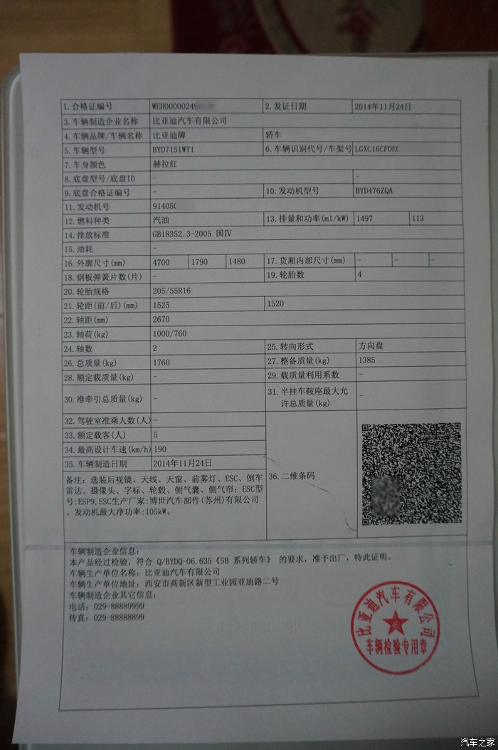 在等待速锐同时,也在物色其他的车辆,也去试过广汽GA3S,但脑海里转来转去就只有比亚迪的车,虽然朋友都不推荐购买,但是喜欢又需要什么理由呢?既然手尊速锐没有,那目标就瞄向G5了。于是和群里想买车的朋友一起了解G5省内的优惠情况,自己也打电话去了解。最后了解到,赣州优惠大,但是要上外地牌,比较麻烦,也没现车。九江白色和红色现车,合格证只要3天就能到,并且还有优惠,具体可以谈,考虑到有朋友是九江的,离南昌也不远,果断杀往九江谈优惠去。到了九江,看到骚红G5,顿时眼睛冒光哇,哇哈哈,但是优惠只送1000油卡,当时心里有点不爽。之后又解到鄱阳优惠2000,并且有合格证,当场可以提车,于是又想去鄱阳看车。朋友立马阻止了我,说不确定是不是有优惠,鄱阳人生地不熟,万一被坑了怎办?想想也是,车毕竟还是算是一个贵重物品,还是不要“冒险”了。