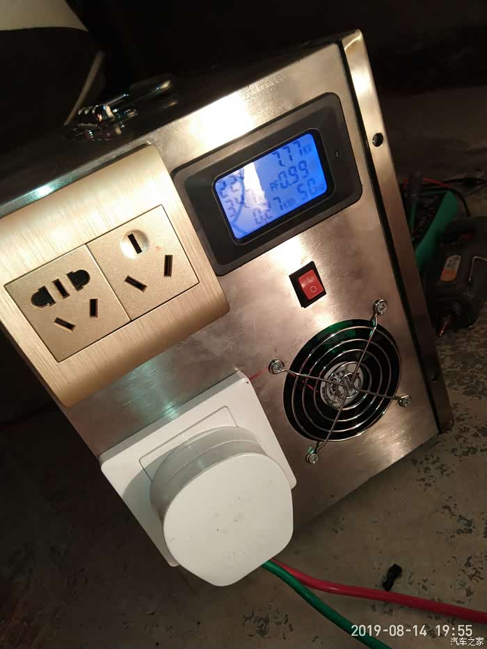取车上动力电池的电。用来当应急电源,或者是郊游烧烤火锅都可以,我自己用的是10千瓦的主要是拿来干活带电焊切割机空压机的。一般的车友的话五千瓦就够用了。可以带一个两千瓦电烤盘和两千瓦的电磁炉。家里应急的话能带两台1.5匹的空调没问题