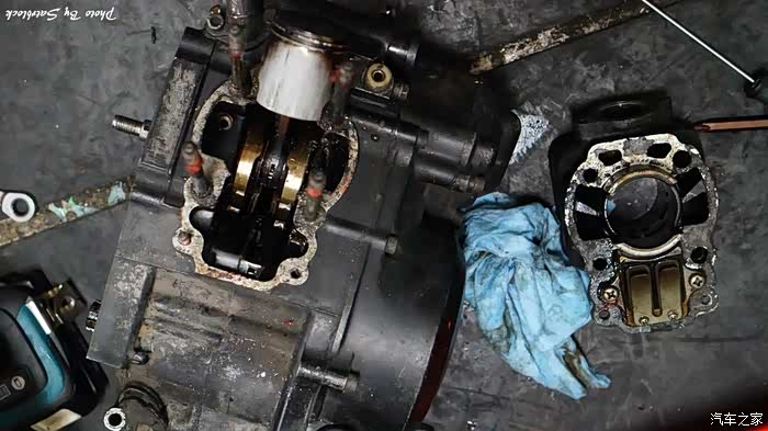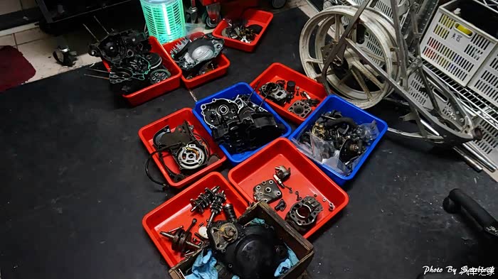 发动机分解完成后(为了避免发动机少零件,同时购买了一台废旧发动机作为零件补充使用)