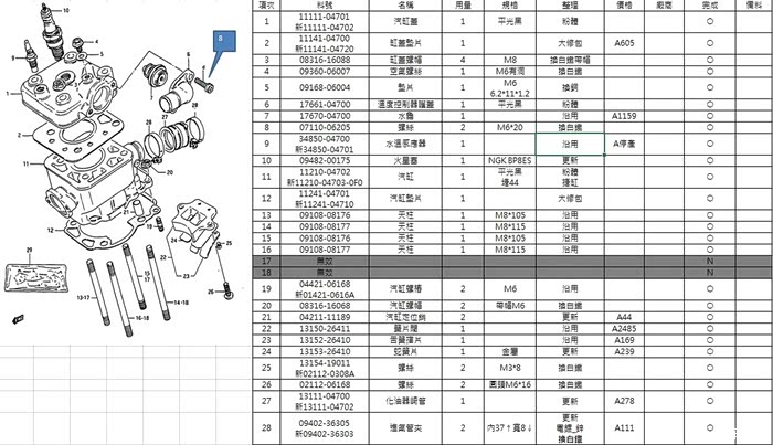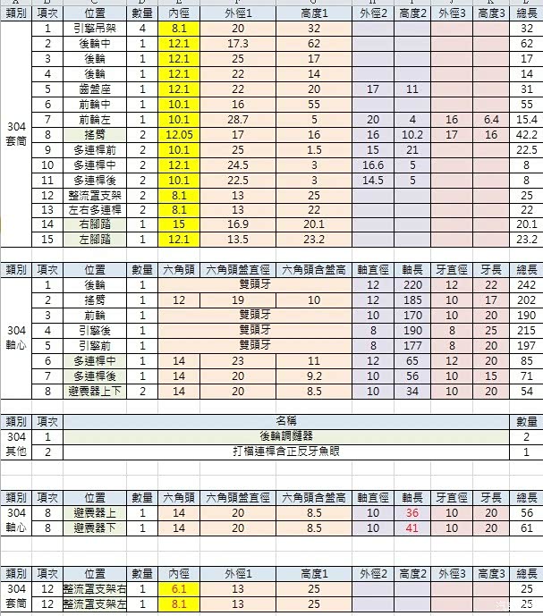 拆卸完成以后,就是一一的对照各项零件,对比原厂零件图册,思考每一个零件如何整理,制作表单进行记录