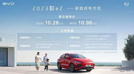 2023款比亚迪e2搭载基于e平台3.0的八合一电动力总成,该套电动力系统高度集成,系统功率密度的增强带来了综合效率的大幅提升。全系标配的高能效热泵系统,以直冷直热技术实现对电池包温度的高效调节,即使是在冬季低温环境中,续驶里程也可提升10%以上。动力表现方面,新车将搭载一台功率为70千瓦的永磁同步驱动电机。