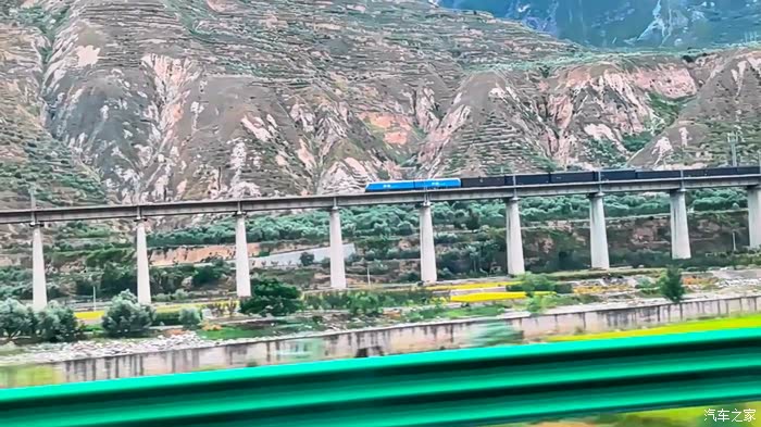 穿过西秦岭隧道驶入兰海高速不久,一列货运列车兰渝铁路上并起而行。以前坐火车翻秦岭要40多分钟,没有想到现在翻秦岭只需要十多分钟。让老一辈感受到祖国基建的强大。