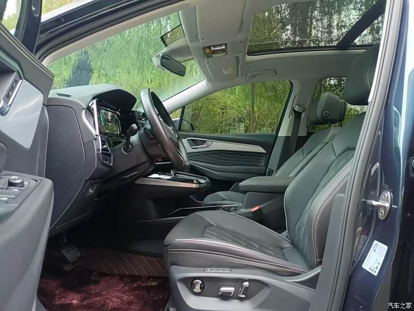 整个内饰设计很有质感,偏商务,两块中控屏不算小,里面的功能也比较齐全,Carplay简直是个神器,连接过一次上车就能自动投屏,还有黑灰的座椅搭配非常时尚大气,软硬适中,打孔的面料加通风功能夏天真的蛮舒服。