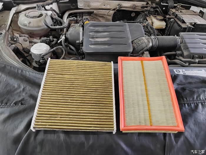 ④更换空气滤芯。说实话,我的用车环境不是很好,家的旁边从买车开始就在修高架桥,路上坑坑洼洼,到单位门口又在修地铁,灰尘特别大。在10000公里保养的时候,更换了空调滤芯,这次看了一下空气滤芯实在太脏了,就更换了一个,价格80元。