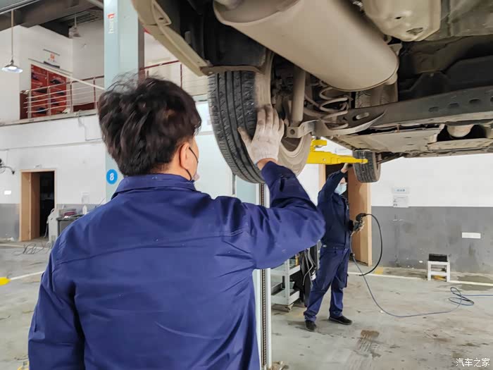 ①胎压检查,轮胎使用状况检查。保养的时候,首先是检查一下轮胎的胎压是否在正常范围,将车子升起来,对轮胎表面进行检查,看看有没有扎一些异物或者是否有开裂的现象,顺便将轮胎缝隙中比较大的石子扣掉。还有就是备胎的胎压,车轮固定螺栓。