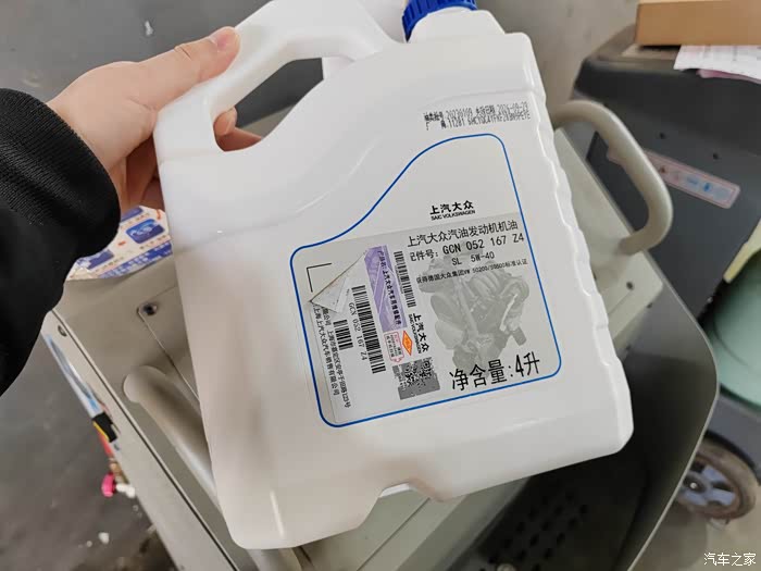 ②使用机油:目前使用的机油是上汽大众SL 5W-40普通矿物质机油,白色桶的那种,机油加注量为4L。