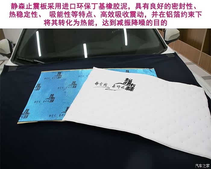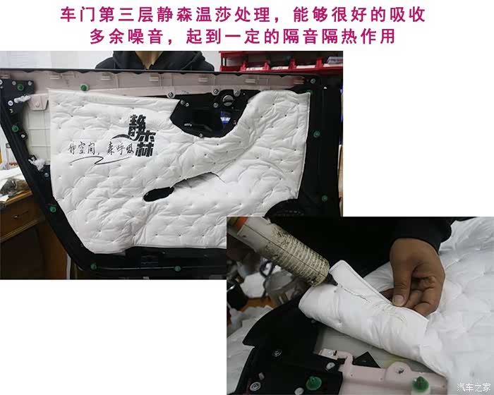 门板隔音第一层静森隔音止振板,有效减小车门板的共振,同时增加门板刚性。