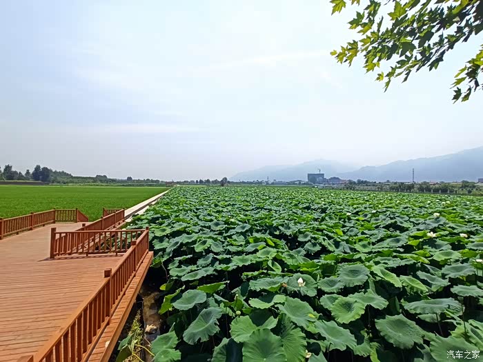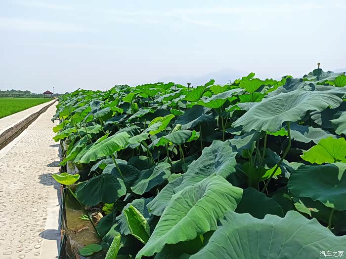 荷花的旁边是一大片水稻