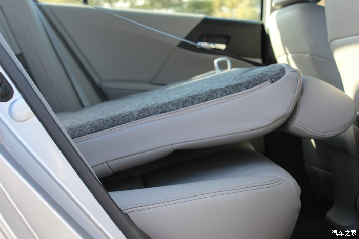 后排中间放倒后是杯架,现在觉得加1000块装的真皮真的很舒服