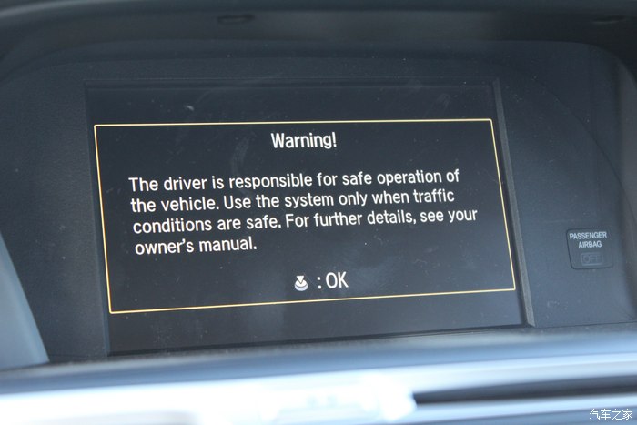 启动时中空屏幕的提示,很多美国厂商都有这种设计,告诫驾驶者要遵守道路安全