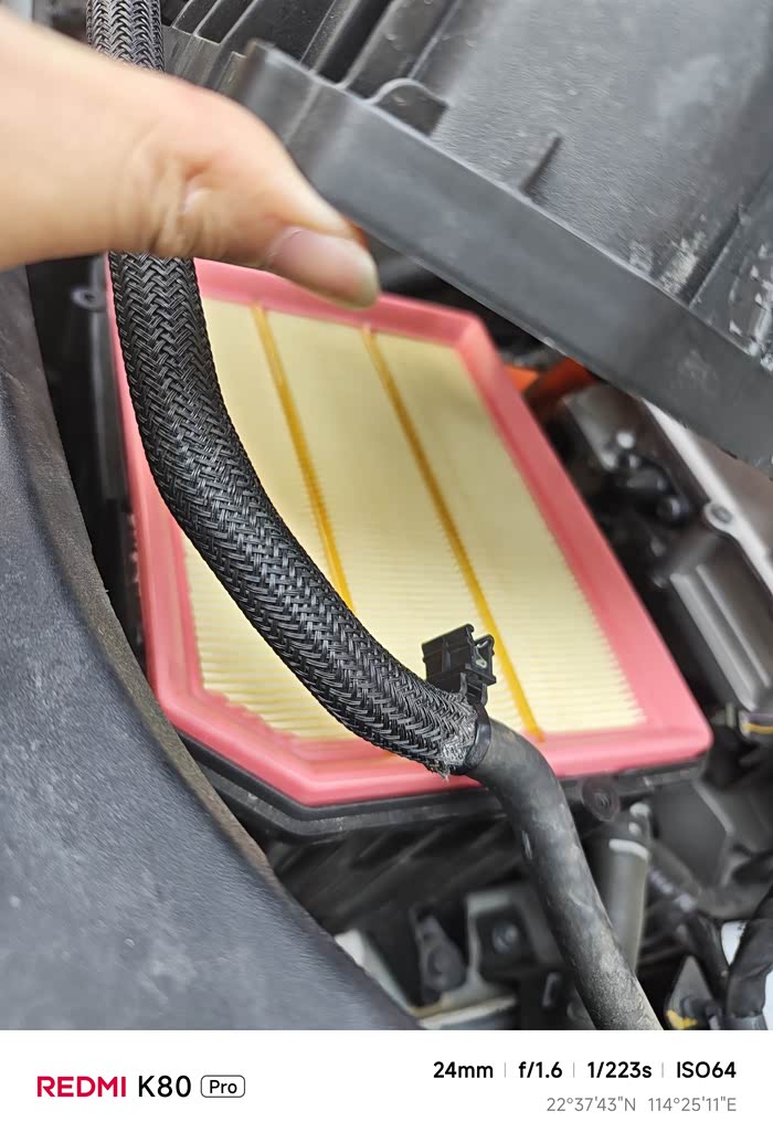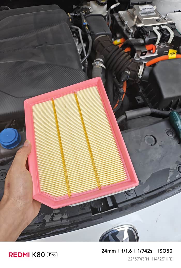 准备工具:十字螺丝刀、新空气滤芯(拼夕夕自行购买,可以选择原厂的,大约十几块钱就搞定。 打开发动机舱:主驾左下方拉手连续拉两次,舱盖弹起后拨动安全扣即可掀起。 找到滤芯盒:UNI-V智电iDD的空气滤芯盒位于发动机舱右侧,黑色方形塑料盒,通过六颗十字螺丝固定,拆卸螺丝:用十字螺丝刀逆时针取下螺丝,但是要注意保管避免掉落到发动机里。掀开上盖:向上轻提外壳,若遇阻力可轻摇解除卡扣,不要暴力拉扯以免损坏我们的进气管。 取出旧滤芯:直接向上提出来就可以,注意清洁一下清洁滤芯盒,可能有脏脏的东西在里面