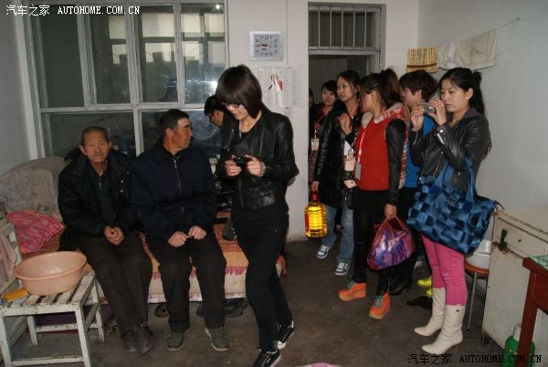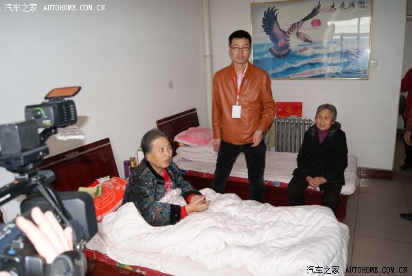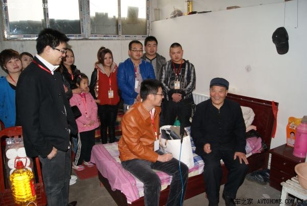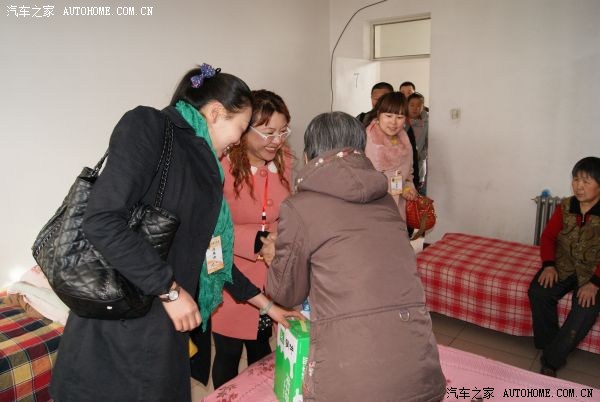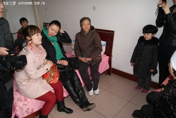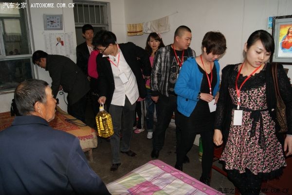 车友们自觉的拿着爱心物资 亲手送给老人们