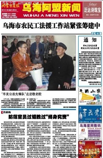 2012年3月20内蒙古晨报头版首先报道了我们的事迹