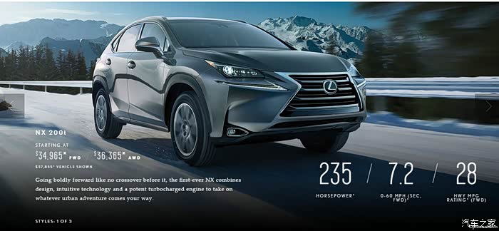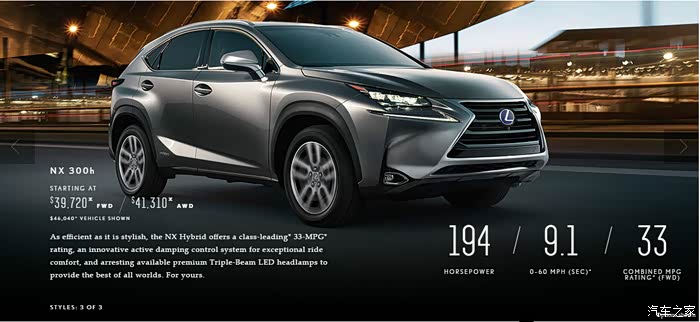 有网友问NX的价格,NX车是和Rav4一个平台,用料不是一个档次,没可比性,不是一个档次的车。200T动力比Rav4好太多。Overall,不是一个档次车,价格也不是一个档次。我开过一次,里面横向空间比rav4感觉要小,适合女生开。悬挂偏颠,大跳动过滤不佳。很尴尬,这车在美国卖的不好。比rav4之类的好,但是不如X3,GLK,GLC,Q5。唯一优势,可靠性。300h和Rav4 混动一样的机头,用料更上档次,贵了1W5z左右其实,因为雷车有很多选配。最后放了官网图片,供参考。