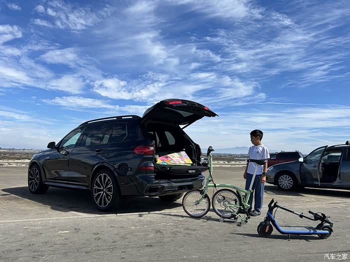 好啦,自行车介绍完了,我们打算出发了。由于我们需要带四辆车,我们今天开宝马X7。其实特斯拉后备箱也不错,但是放进四辆车还是有点够呛。