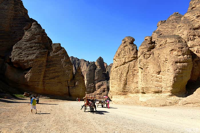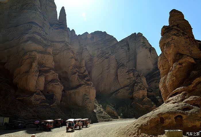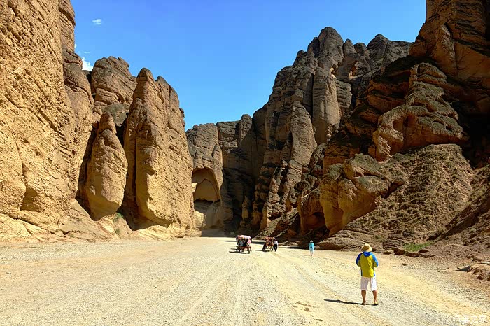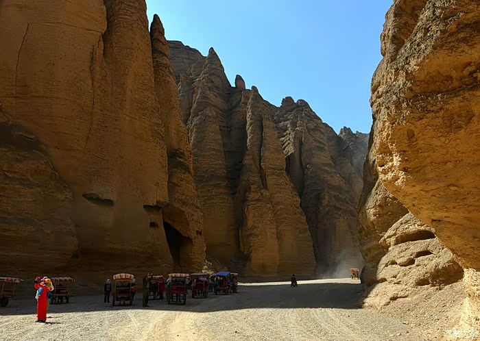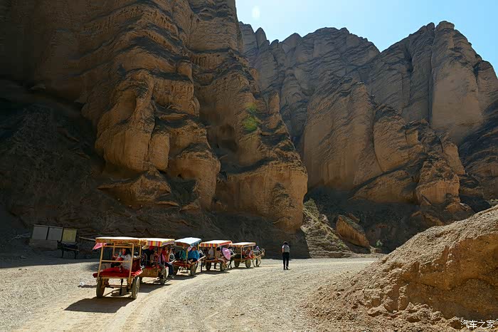 ▲ 我们在这里换乘”驴吉普“开始了乘毛驴车游览黄河石林走廊。