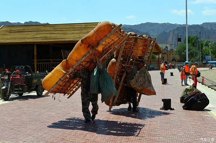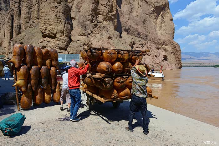 ▲装到毛驴车上,然后把羊皮筏子送到漂流起点,等待下一次漂流。