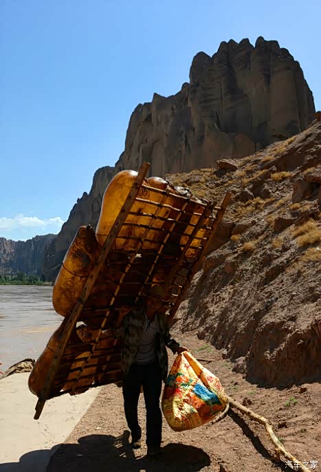 ▲ 扛起羊皮筏子。
