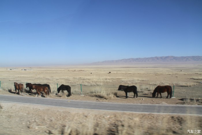向塔尔寺进发,必须先返回西宁市里,路过经过的马群。