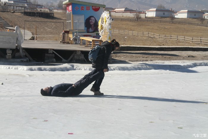 一对青海大学的情侣在,冰封的湖面上嬉戏。
