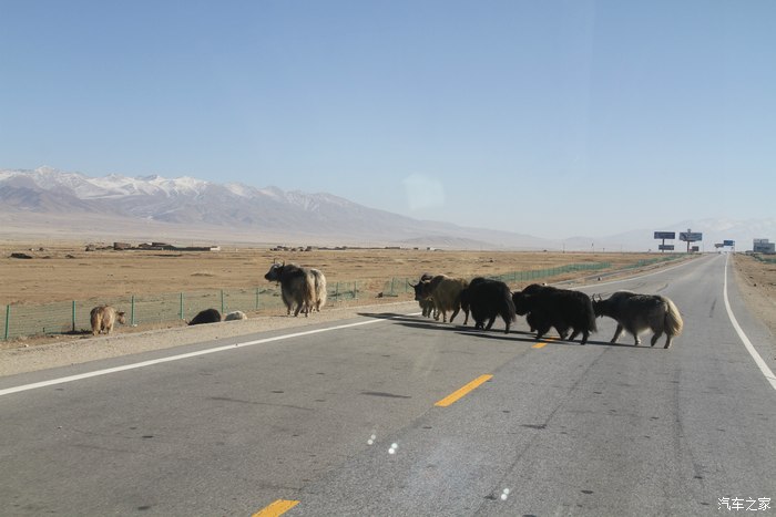 没见到牦牛,敢说我去过青藏高原吗?但是看见牦牛过路的又有几个呢?及时停车,看着道路很直,记得一定不能超过60啊。