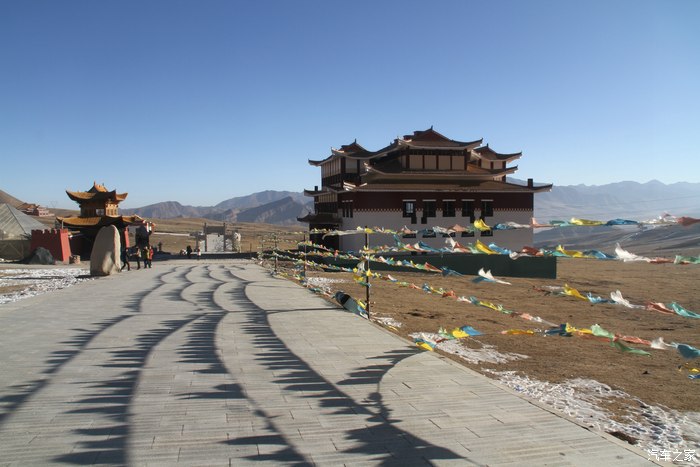 远山,白雪,寺庙,白塔,加上车内环绕的天籁音乐,惬意啊!