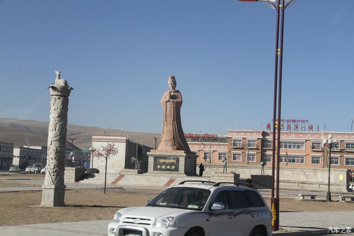 这个公主的服装和肤色都不一样了,出了日月山再走40多公里就是青海湖了,路上路过一个小镇,赫然写着“青藏高原第一镇”,没想到公主成了镇守使啊,不过公主已经脱下了唐装,换上了藏装。
