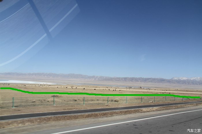 标记了 远处的牛、羊、马群,左边冰封的也是青海湖,远处的山脉好看吧,夏天来了更好看,这里海拔过4000了。