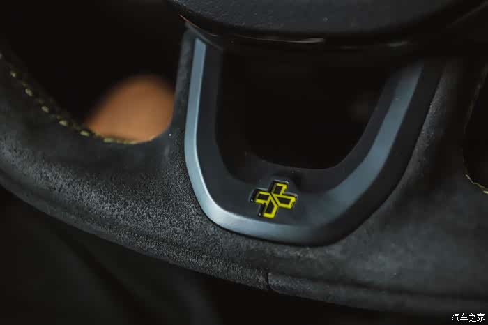 进到车里的第一感觉,就是怎么这么多的Alcantara装饰?座椅、中控台、顶棚几乎都是翻毛皮的装饰,虽说全黑的内饰可能显得有些单调,但是黄色的缝线无疑是为车内增添了几分俏皮感