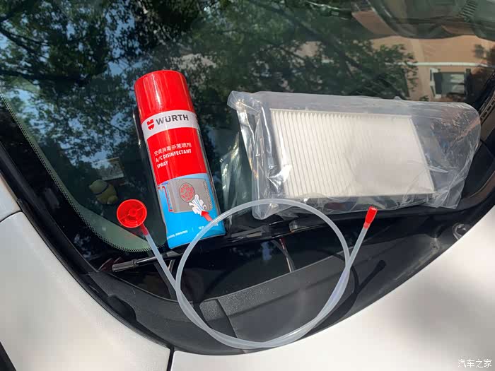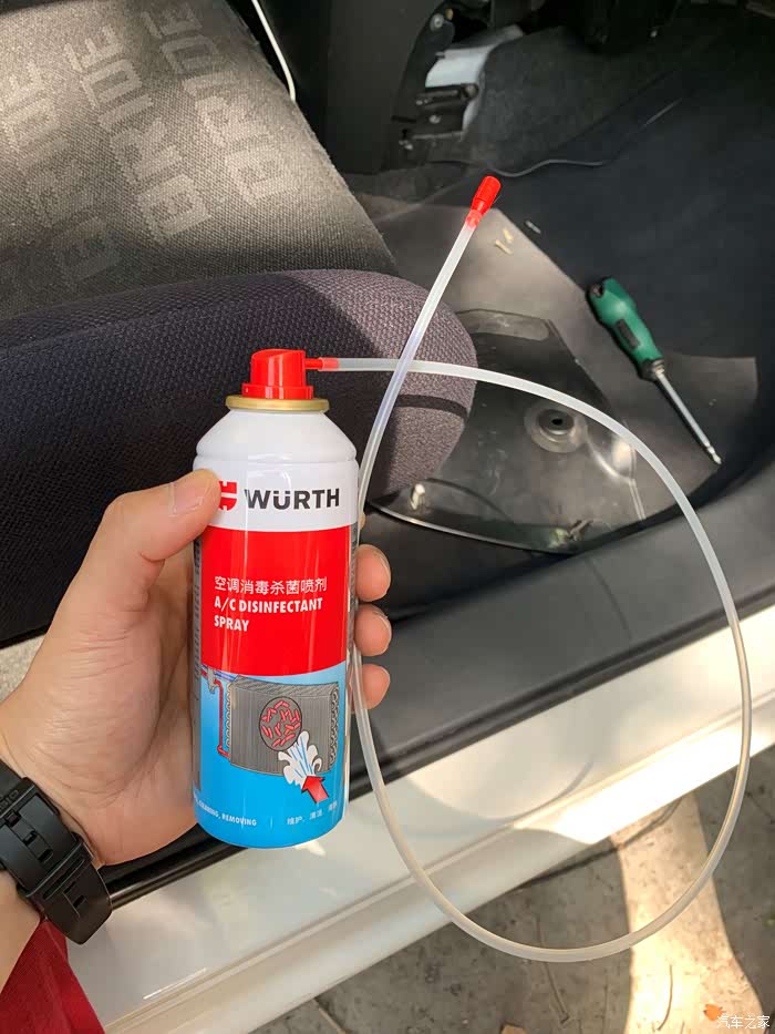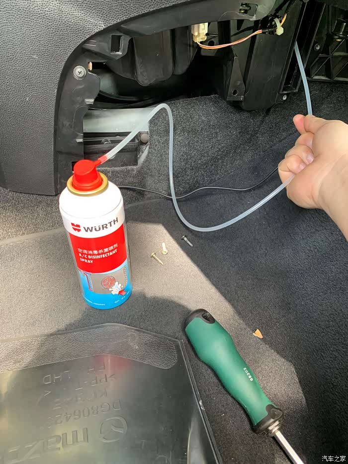 由于蒸发箱的位置在仪表台后面,要做拆洗的话,要把仪表台整个拆下来,工程量巨大,而且后损坏卡子造成异响的风险,拆洗是不现实的。所以我选择用喷洒杀菌消毒剂的方法来清洁蒸发箱。