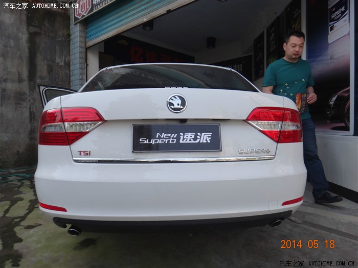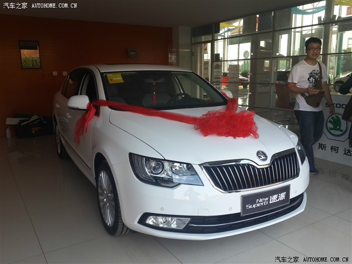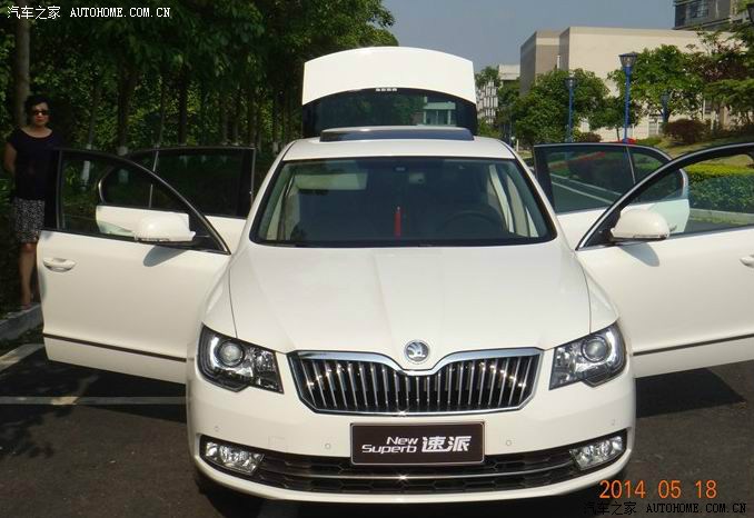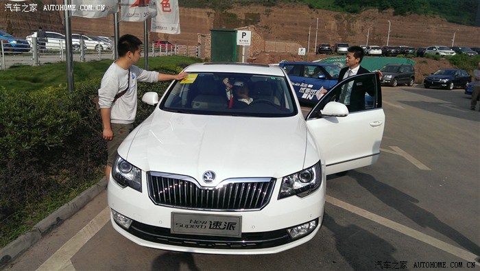 这期间,我特意留意了琥珀棕,论坛上有车友上图,颜色看上去偏黑,与4S店宣传资料上的展示风采差别真是大了去了。心里不免咯噔起来。既然配对未成,想来还有选择颜色的机会,于是周末的5月11日下午,第四次到了4S店,见到现实版的速派琥珀棕了,看来,你要想它好看,得请太阳照顾随时至少5千瓦的360度无缝照射。2.0T的白色速派,静静地在展厅里卧着,帅气逼那个人啊。销售顾问小李请我考虑一下这款车,我直摇头,说这个排量太不环保了,一口婉拒。继尔又说出了心理接受的价格,他一听,只摇头:莫得法哟……
