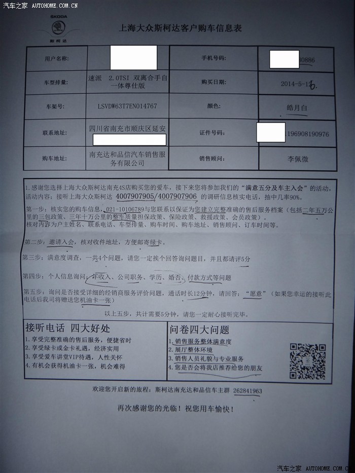 投诉后不到十分钟,小李来告诉我们,领导同意,可以正式提车!一时皆大欢喜。嘿嘿,翠花,上酸菜;我,上图呢——