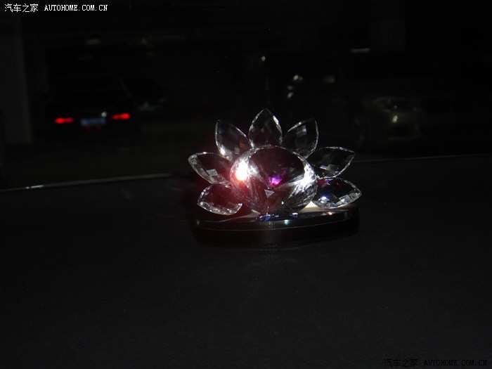 中控台饰物:水晶莲花,夜色中折光闪亮——