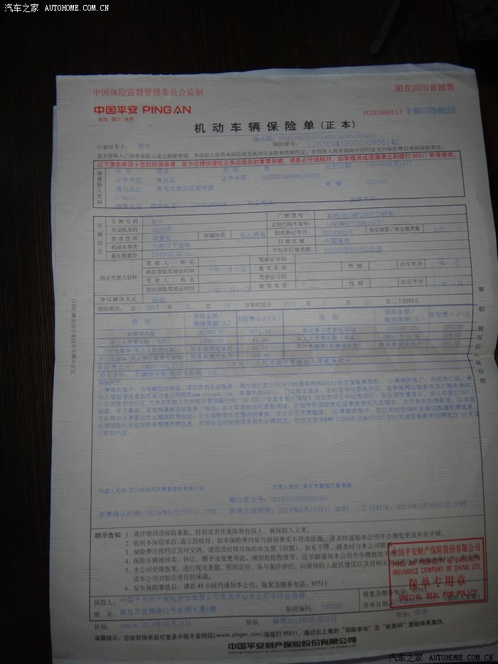 5月13日,与杨庭长一道,驱车前往4S店,交清首付款,同时不让小李为难,就在4S店办了价格偏高的保险,并将相应资料交与建行工作人员。建行的小姑娘说信用卡刷卡要到账后才能提车。我对此等无法无天的无知无畏的话如风过耳,置若罔闻。