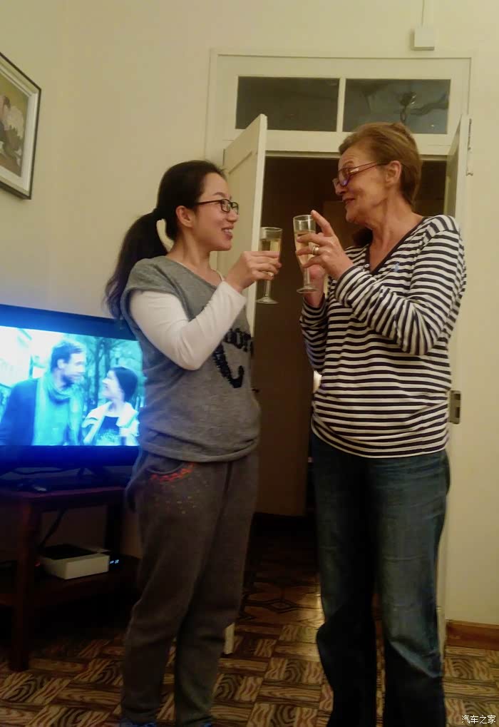 老太太还特意开了一瓶香槟,