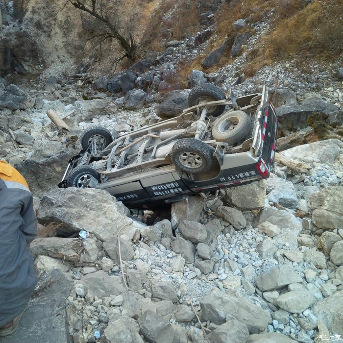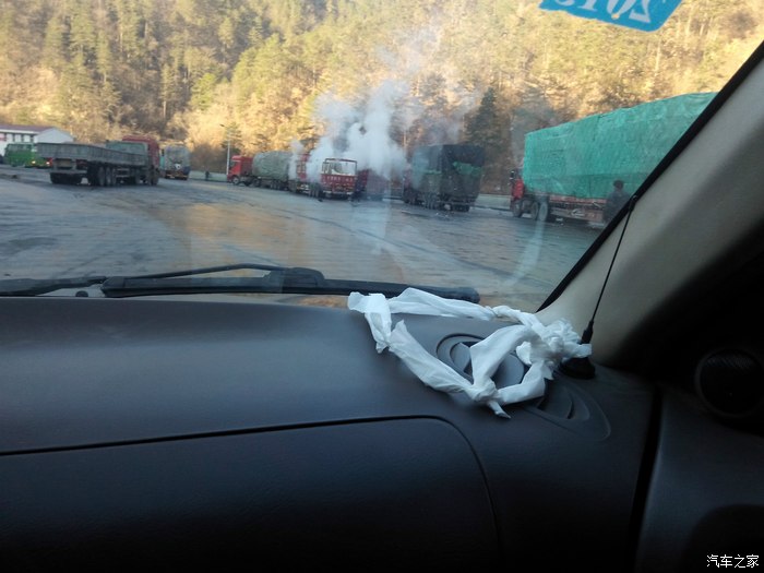 这里海拔比较高,阳光足,太阳地儿里很热,但是晒不到的地方仍然有结冰。这不就出车祸了吗。