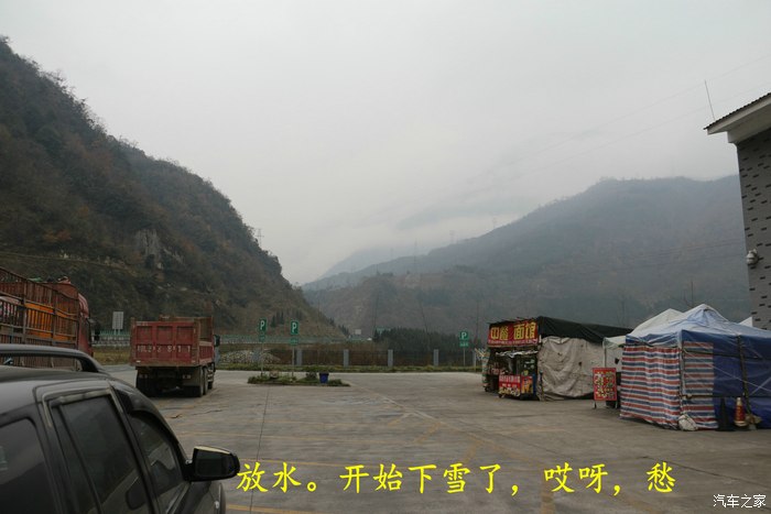 山里面开始路面结冰,给本身就不好走的秦岭又添加了技术难度,车速在60KM/H降到40KM/H.后悔没买保险就