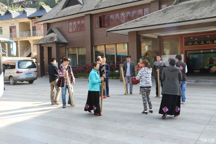 哈尼族村庄,实际就是一个茶园。进了园子跳了一段不知什么舞,以示欢迎。