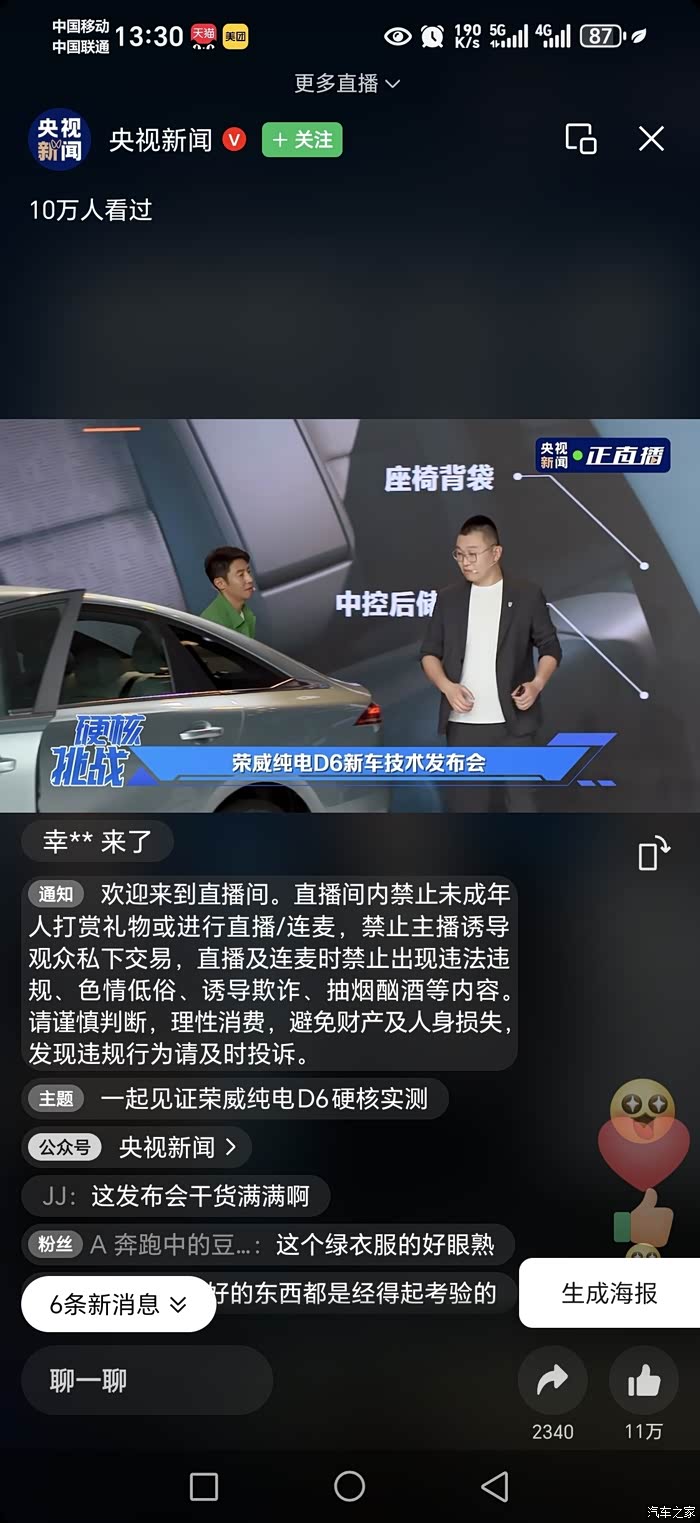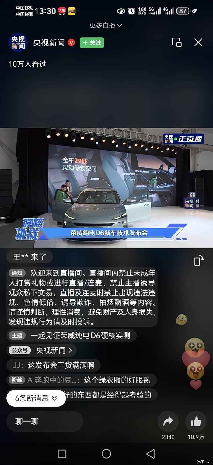 通过今天央视新闻的直播,撒贝宁带着大家一起见证了荣威纯电D6的硬核实力。不管是安全性能,还是技术配置,荣威纯电D6都表现得相当出色。