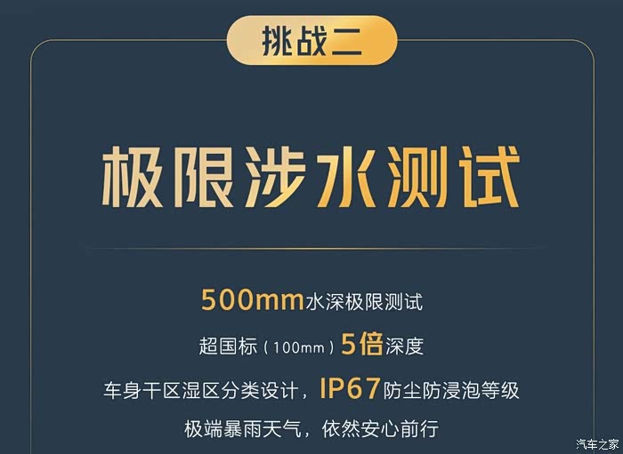 紧接着就是500mm涉水测试,这对很多车来说可是个大挑战。要是密封性不好,水渗进电池,短路、故障就可能接踵而至。可荣威纯电D6直接开进水里,一路畅行无阻,出来后电池依旧正常工作,这防水性能真不是盖的。