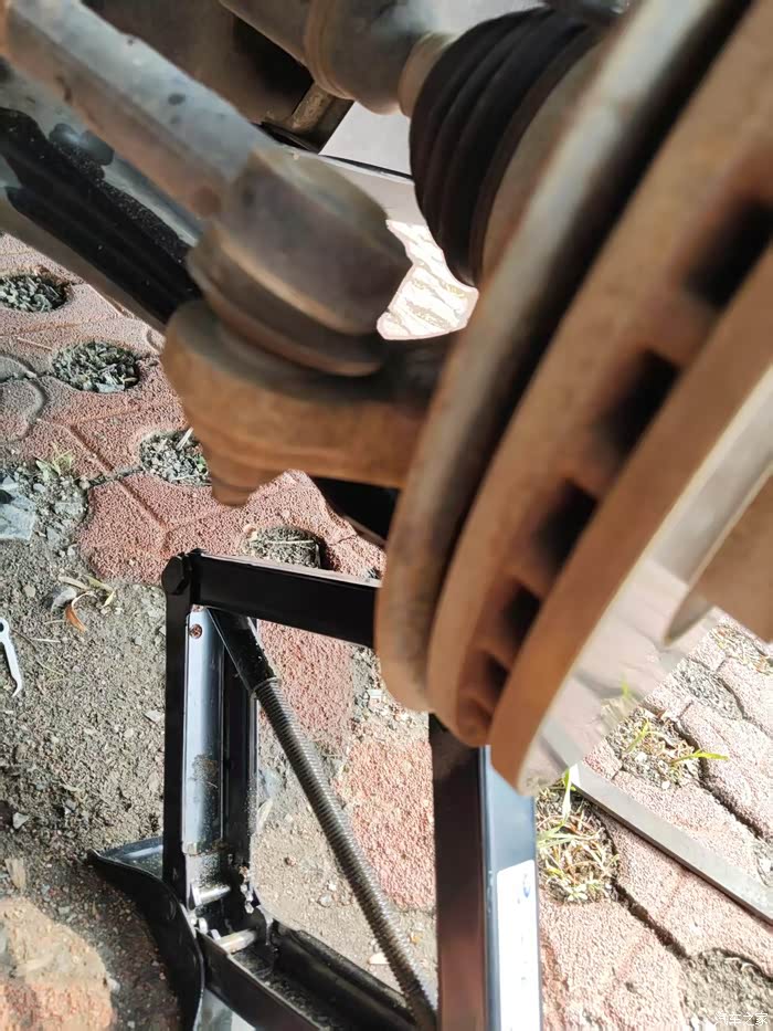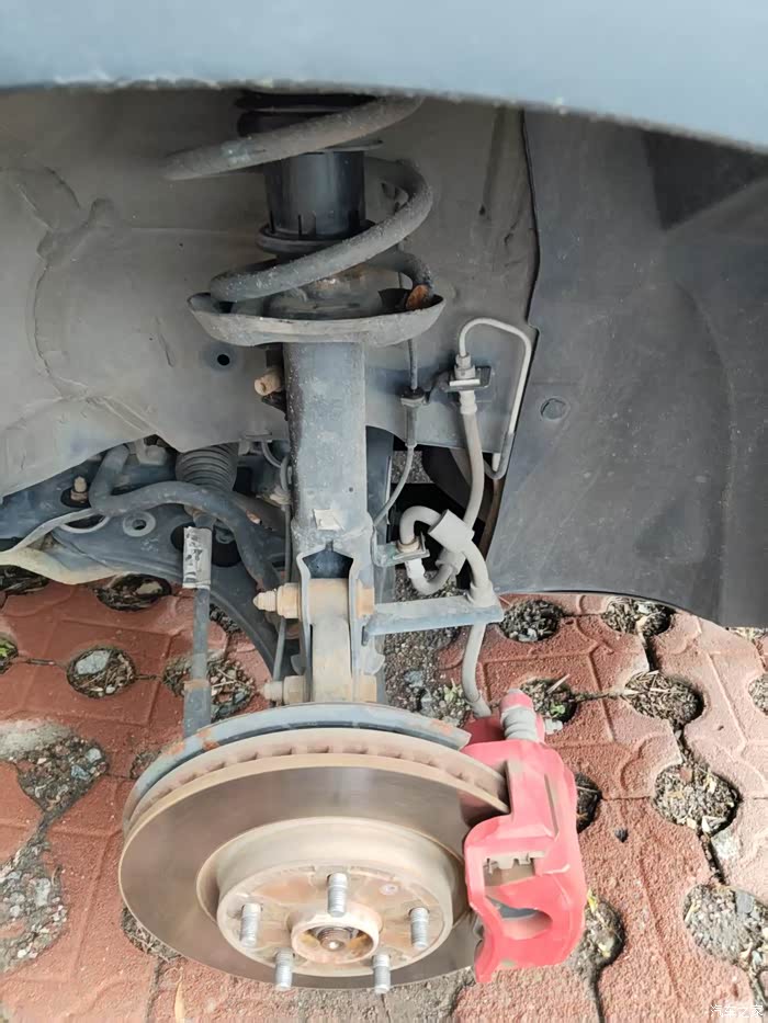 拆掉轮胎,一共几颗螺丝,加上ABS线,刹车油管,还有平衡感小吊杆。没有大太阳。开整。