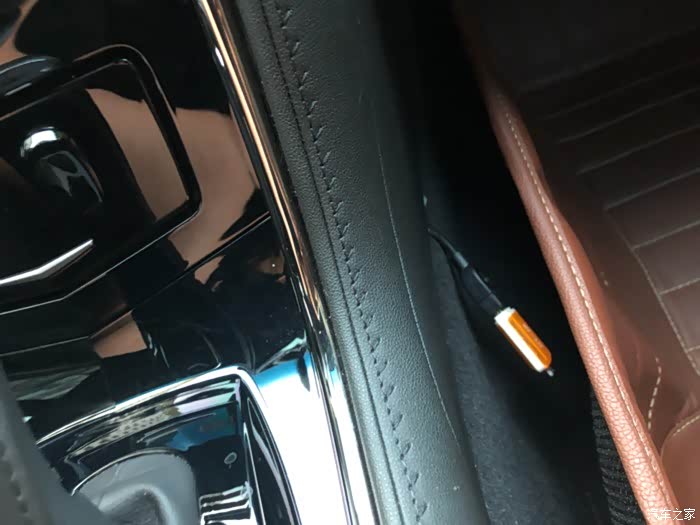 USB接口给我安装在这个位置,我看其它车友都是安装在手套箱里的   ,不过这个位置也可以   脚垫可以挡住