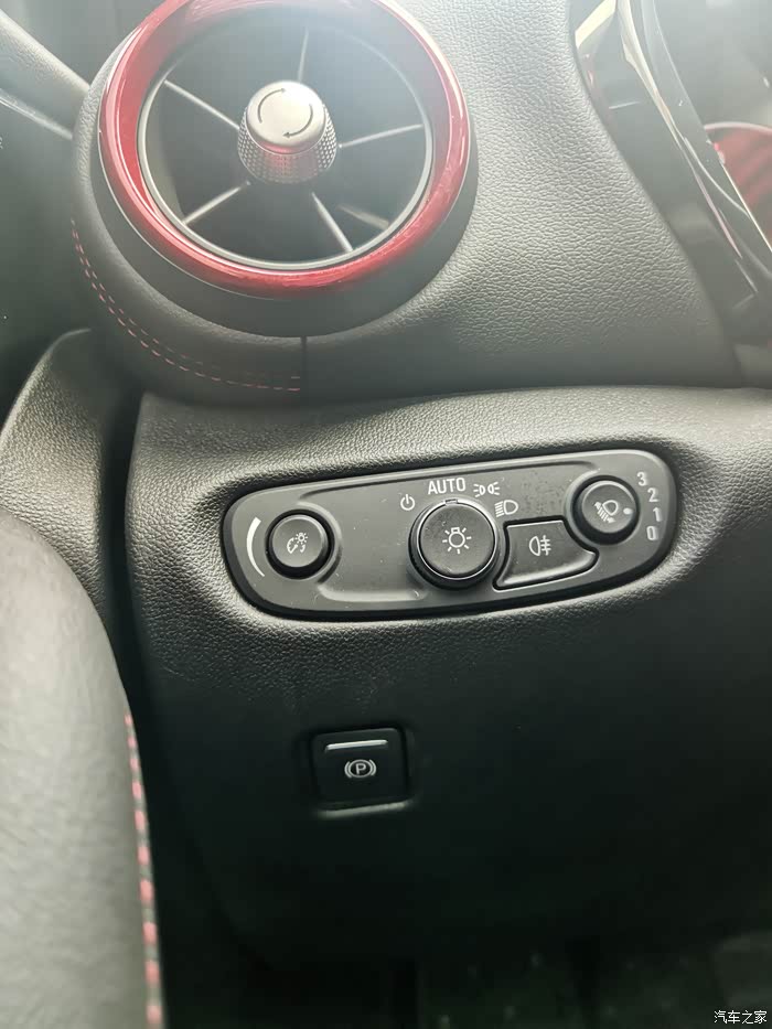 电子手刹,大灯控制,以及左边出风口的布局,电子手刹放在这个位置 着实有点不适应,控制按键需要向下按一下,才能开始调节。